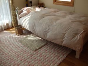 パッチワークで娘の部屋のラグ作り(*'-'*) 2010年04月08日 こんにちは♪今日はいい天気で嬉しいですね~o(*^▽^*)o~♪ 以前、「娘の部屋に敷いているラグ」を作るぞ!と書きました。 今まで使っていたラグはコチラです 私が娘時代(いつだ??)にパッチワークで母が作ってくれたもの。 色あせて、つなぎ目もぼろぼろだから作り直