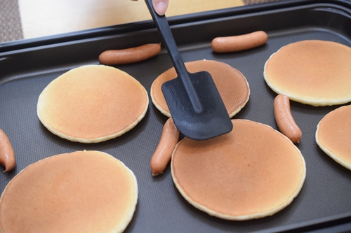 週末の朝、パンケーキをホットプレートで焼いたのですが(ソーセージも焼いている)、
