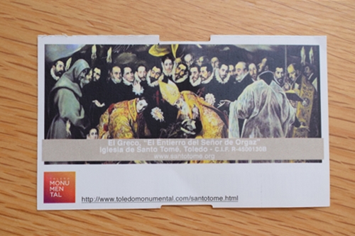 こちらは小さな教会ですが、エル・グレコの最高傑作「オルガス伯爵の埋葬」があり、じっくり鑑賞することができました。(写真撮影禁止なので、写真ありませんが上のチケットの絵です)