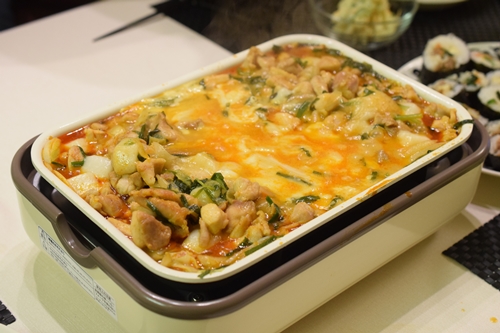 タッカルビにとろけるチーズをつけながら食べるのが「チーズタッカルビ」だそうな。