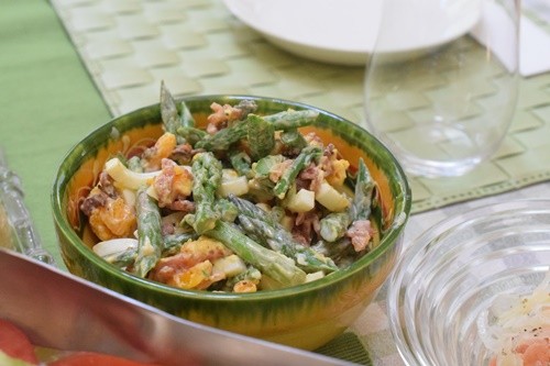アスパラガスとベーコン、ゆで卵のサラダ(夫が作った!山梨の実家のアスパラです)