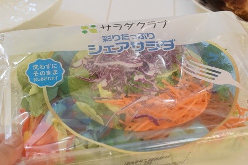 サラダはこちらのカット野菜を買ってきて~400g入り498円。
