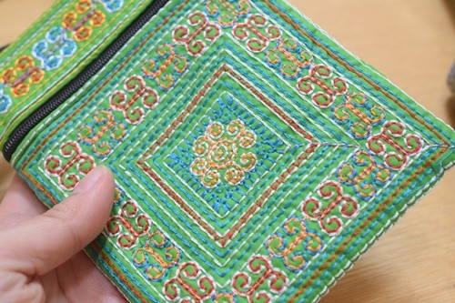 ベトナムチックな縫物…どちらも200円ぐらいだったとか。ペンケースは柄がずれている💦