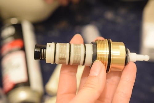 ↓この部品で水とお湯の分量調整をするらしいのだけれど、これが動かなくなっていたそう。