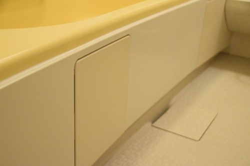 業者の方がおっしゃるには、ここからは人間が出入りできないので、浴槽の外側からナットを外すには床下点検口から潜って、浴室の下まで行って、床下から六角レンチで外すことになると。