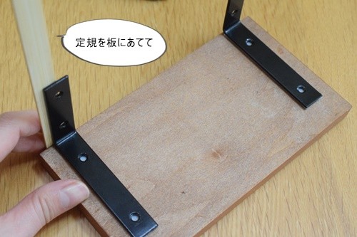 端から1㎝のところに鉛筆で印をつけて、貼り付けるときは定規を板にあてて、上から滑らせるように落とすと貼り付けるときに失敗しません。