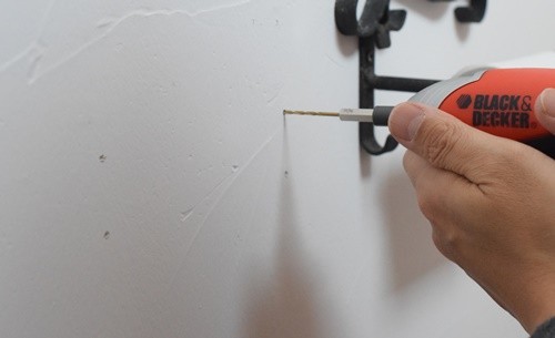 水平をチェックしながら、穴のところにシャーペンで印をつけます。