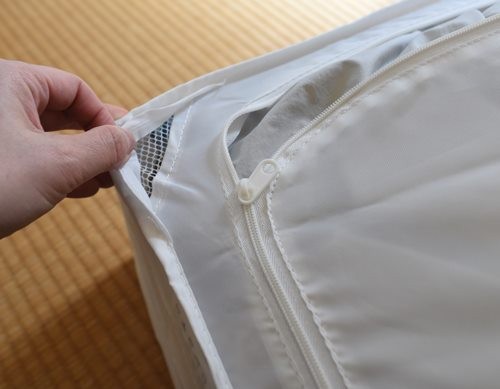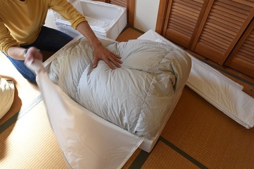よく売られている羽毛収納袋は、丸くなってしまって、かっちりしまえないので嫌だったんですけど、これならベッド下にも綺麗にしまえそうですね~🎵