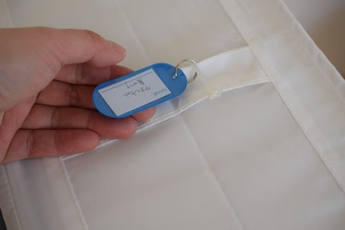「タオルケット」などと書いて、持ち手のところに付けます。
