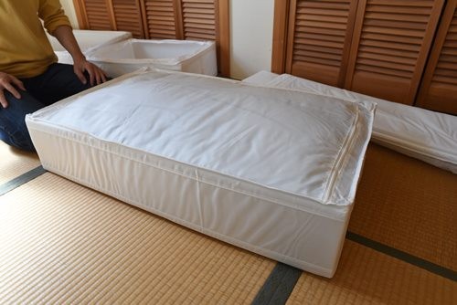 クローゼットや押し入れにも、四角く収まると美しいと思います。