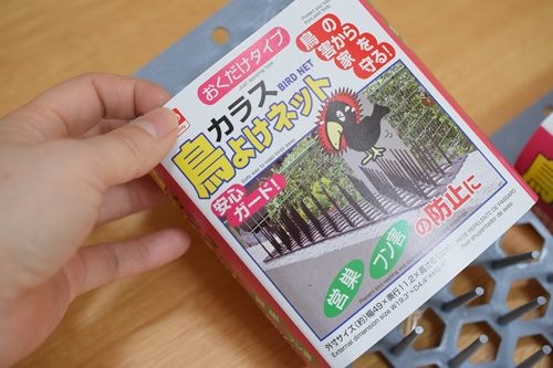 買ったのは、カラス除けネット2つ(100円×2つ)。園芸コーナーの辺りにありました。