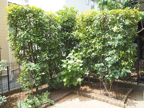 梅雨に入る前にちょっとさっぱりさせようと、昨日は夫と庭のミエカナメの剪定をしました。