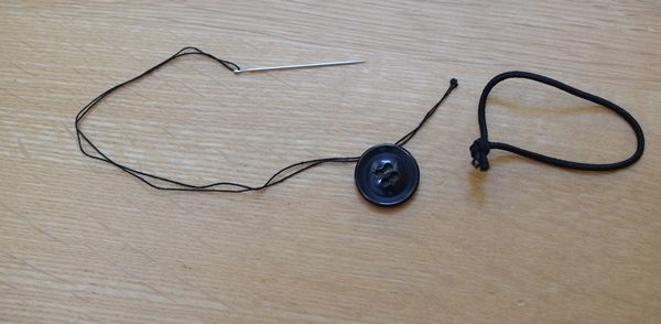 黒糸、ボタン、髪ゴム(20㎝ほど)を用意。