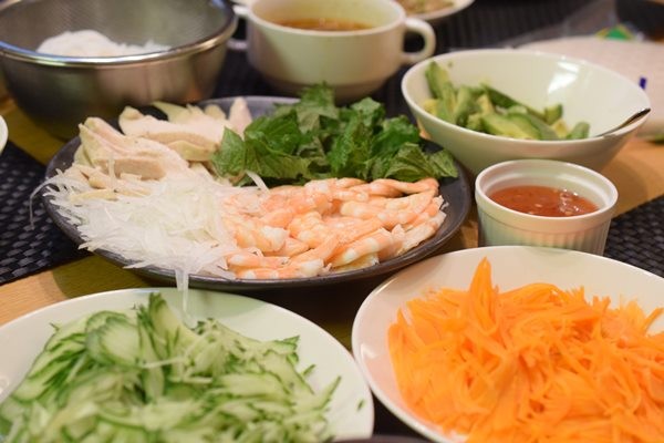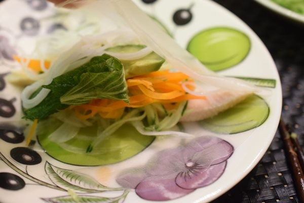 あとは、生春巻きを出したのですが、テーブルの上に具材を出して、各自で巻いてもらいました。