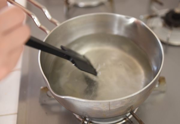 砂糖大匙2を加えて溶かして。砂糖が入ると透明になるそう。