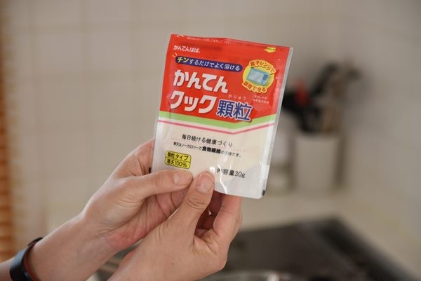 粉寒天1gを加えて、火をつけて溶かして。ゆるゆるの寒天ゼリーを作る感じですね~