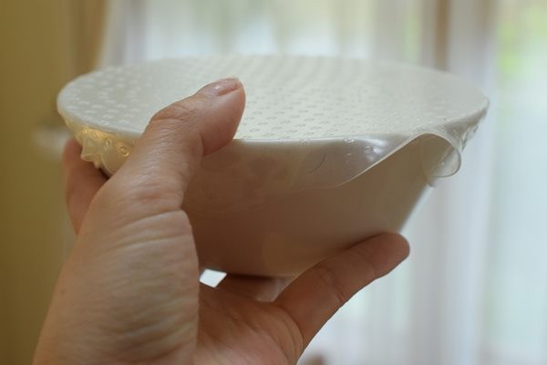 例えば、丼に水を入れてちょっと実験。小さいほうのシリコーンラップを使います。