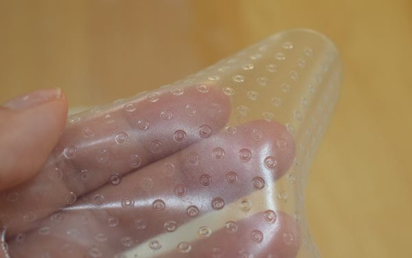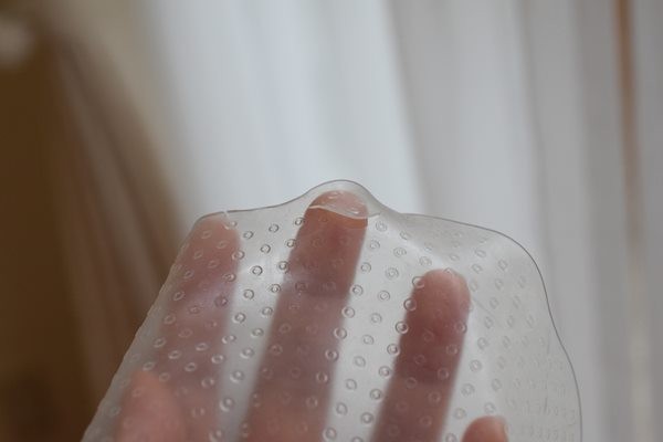 こんな風にぶつぶつ突起があるのだけれど(そちらが上になるようにラップします。裏表を逆にすると粘着しません。)、穴が開いているわけではありません。