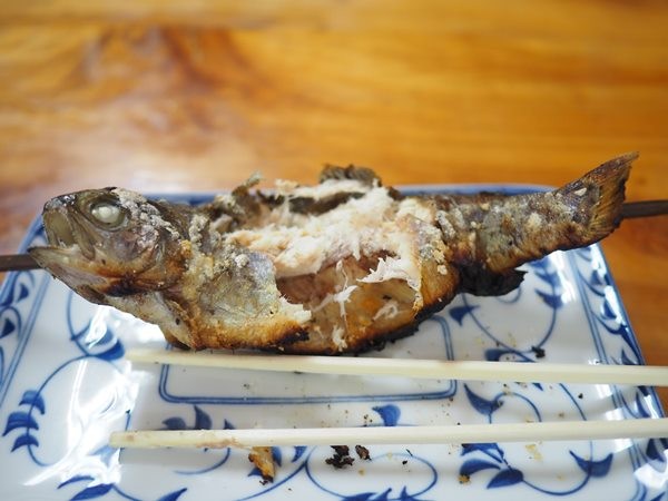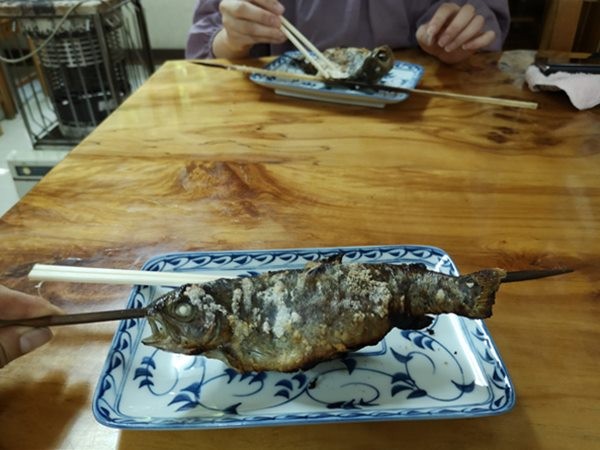 じっくり炭火で焼いたマスをお皿にのせて出してくださいました。
