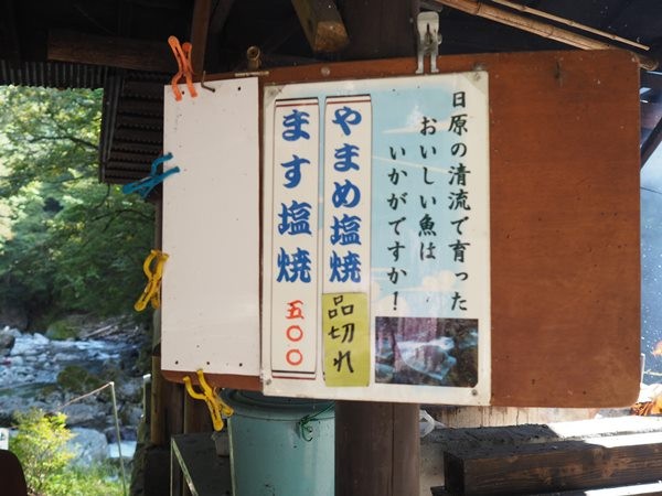 入場券売り場の方に聞いたところ、近所の渓流釣り場のところでお魚を食べられると教えてもらったので、歩いていきました。よかった~食べるところがあって💦