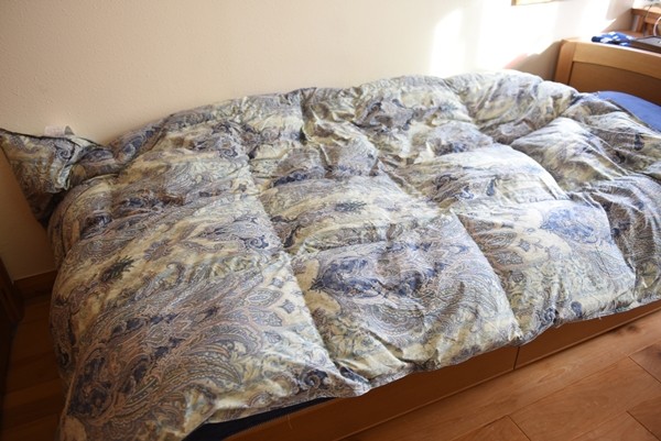 息子の使っていた羽毛布団がだいぶへたっていたので、息子の布団にすることにしました。