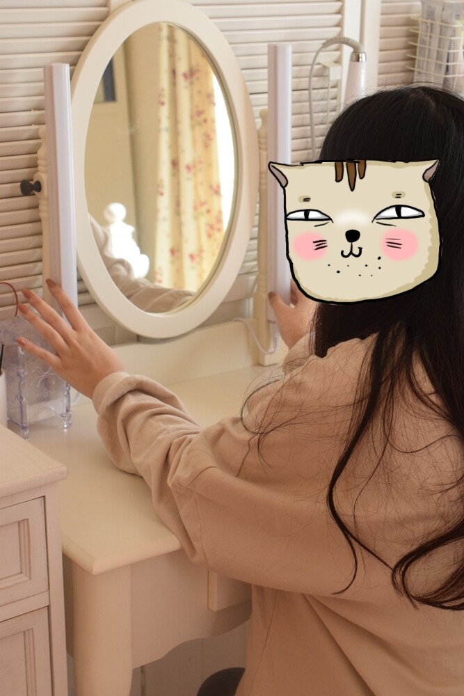 鏡の横に四方八方から光を当てる(なるべく自然光に近い色の)ライトをつけると、ナチュラルメイクができてよいそうなの。