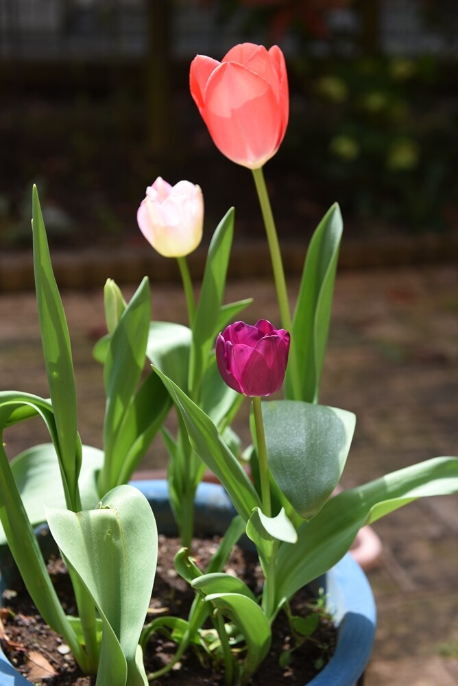 特に今は春。チューリップが咲き始め、バラも蕾をつけてきて、あちこちで新芽が出てきています。