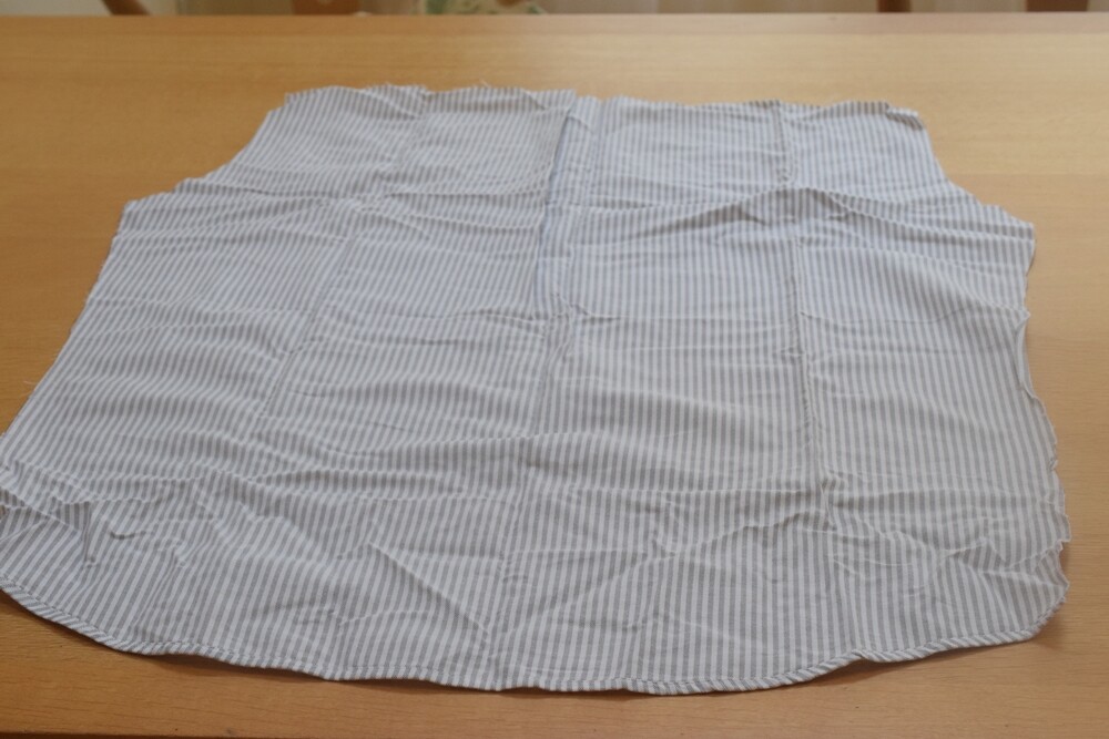 夫の綿シャツって、襟や袖の部分が擦り切れてきた時点で廃棄する(切ってウエスにする)のだけれど、背中部分は広い1枚布で綺麗なままなので、捨てるに忍びなくて(笑)