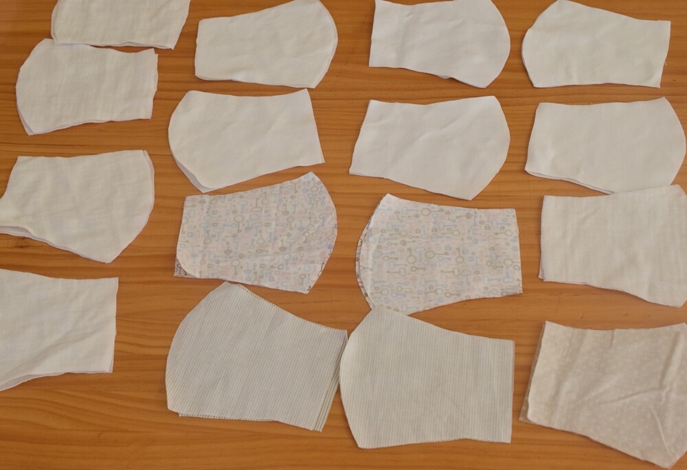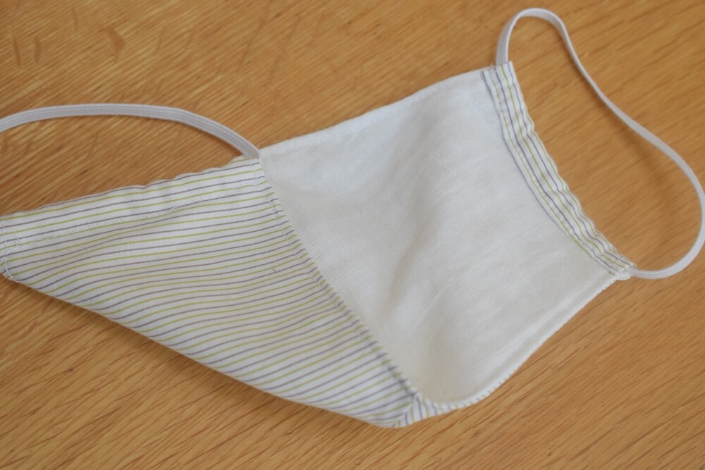 むしろ白の布を持ってなかったので、口側はダブルガーゼで、外側はチェックのタオルハンカチや、小さくなった息子の派手なパジャマなど、可愛さを求めてむしろ派手に作ってました!