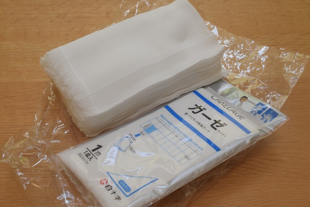 山梨の実家から、使っていないガーゼをいただいたので、これを裏布にすることにして。(2枚重ねてダブルガーゼにしました。)