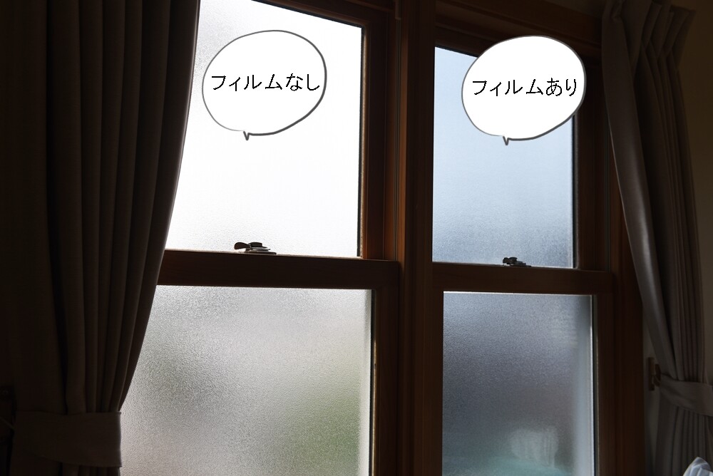 断熱フィルムを貼っていない方は温かい感じ。