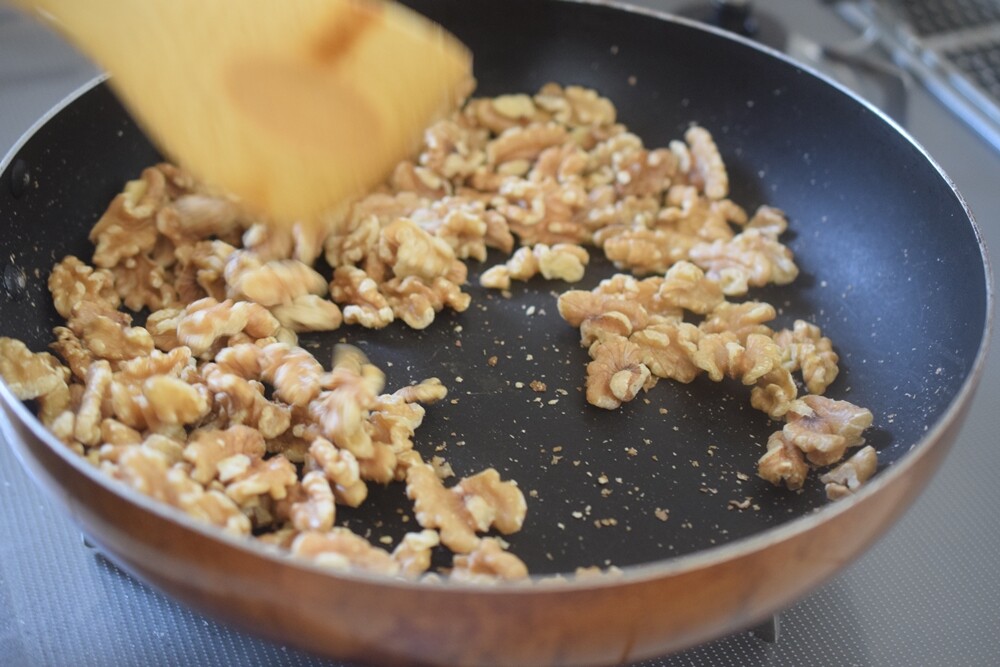 オリーブオイル、にんにく、塩、クルミ、バジル、粉チーズをブレンダーでがーっと混ぜるだけ。