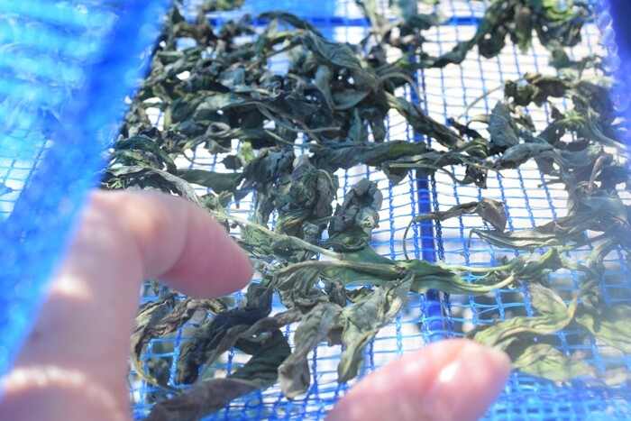 3日干したら、葉の色が少し褪せて、葉っぱが縮んでいました。