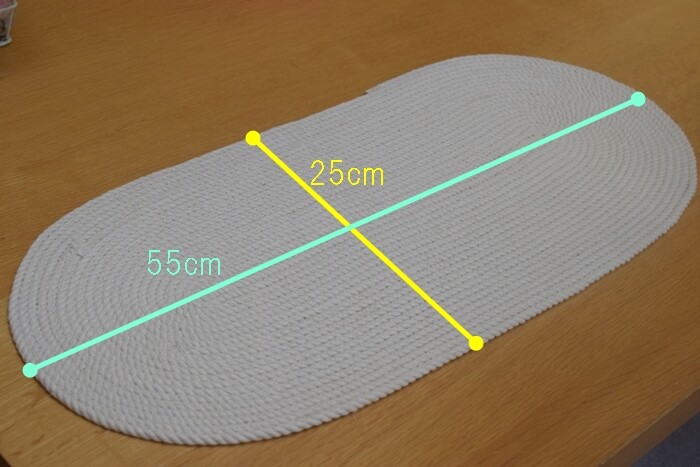 100円のコットンロープ3つ分でこれくらいの大きさのマットができました。