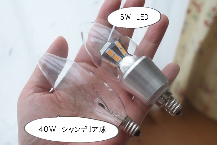試しに普通のシャンデリア球を付けてみました。明るい!!