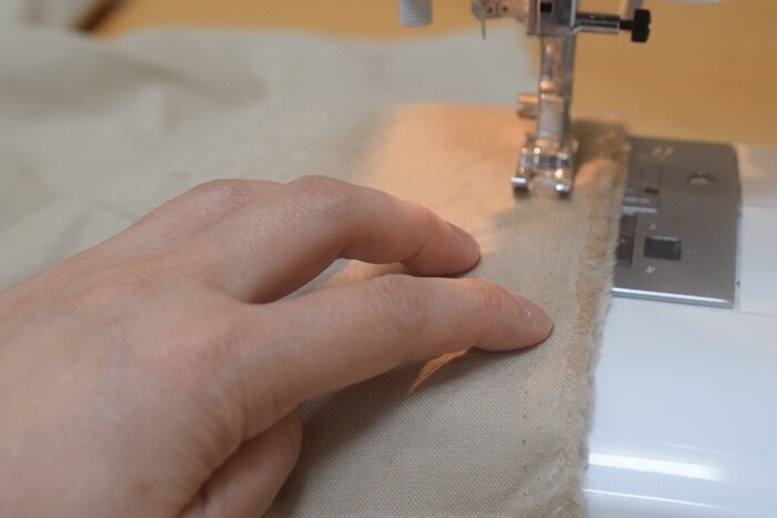 今回は布が中途半端な幅だったので、ちょっと残しても仕方ないし…、ファスナーをつけず長い袋状にすることにして。