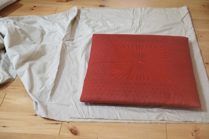 本当に適当なのだけど、座布団を布の上に置いて、これくらいの幅でいいかなって感じで切って。