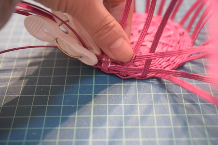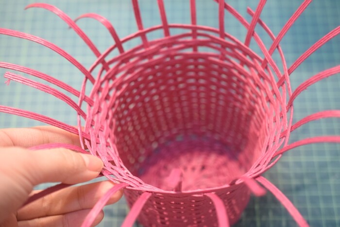ダイソーのものは今まで使ってきた(ネットで買った)クラフトバンドよりもちょっと毛羽立った感じがしたので、材質はイマイチかなと思いましたが、まぁちょっとしたカゴを作るには必要十分かなと思いました♪