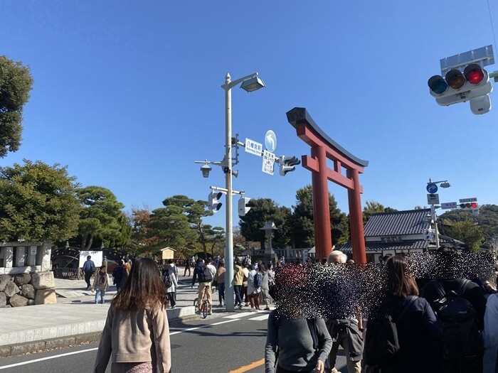 七五三でとても混んでいたそうで、人数を区切って参拝する仕組みだったそう。