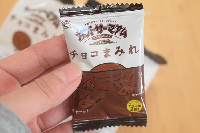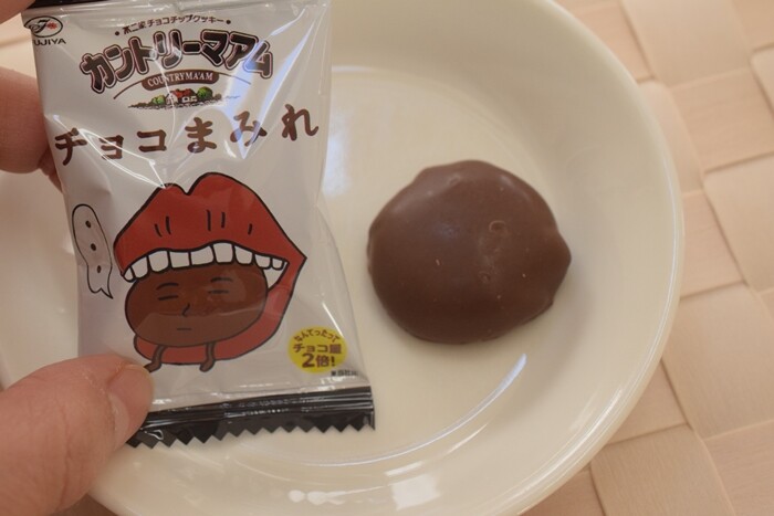 しっとりしたチョコチップ入りのカントリーマアムをミルクチョコレートの中に落として、たっぷりコーティングしたイメージなのかな💛