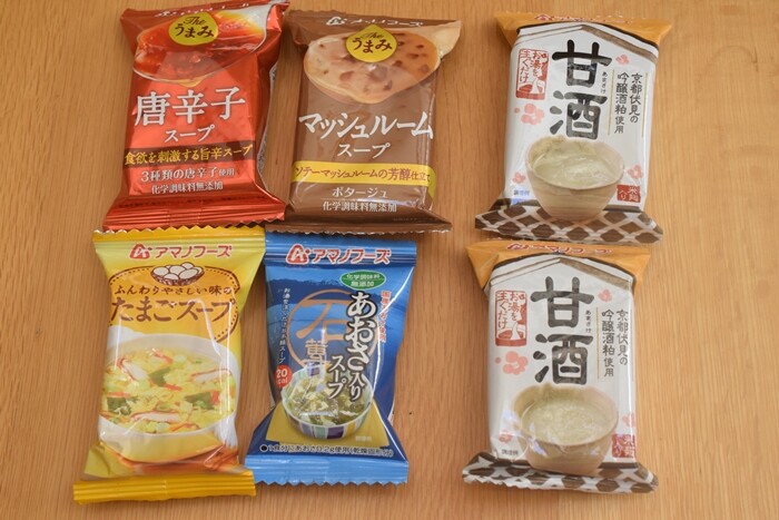 「スープ」は4袋、そして「甘酒」が2袋。まだ飲んでいないけれど、甘酒も楽しみ💛