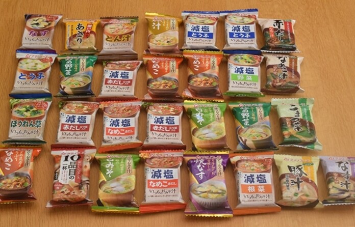 味も色々。お湯を180cc注ぐだけですぐに美味しいお味噌汁が作れるので、便利です。