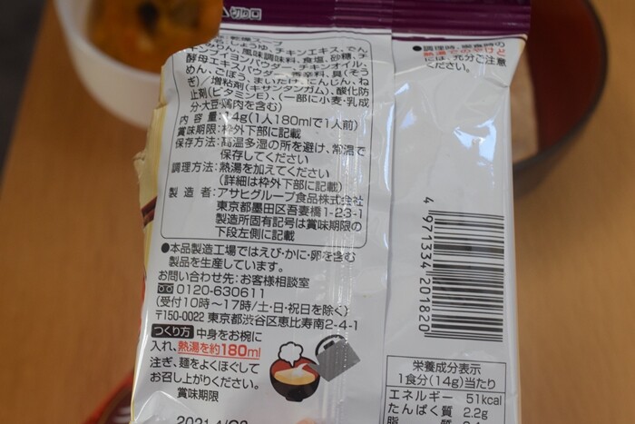 お湯を加えるだけ。これまた満足感高いタラコ味。