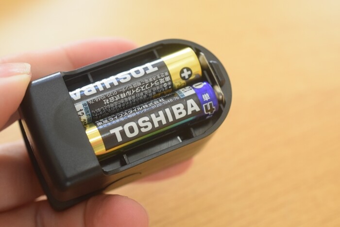 単4電池を2本入れます。(サイトの説明では、動作確認用電池が付属と書かれていましたが、入っていませんでした。)
