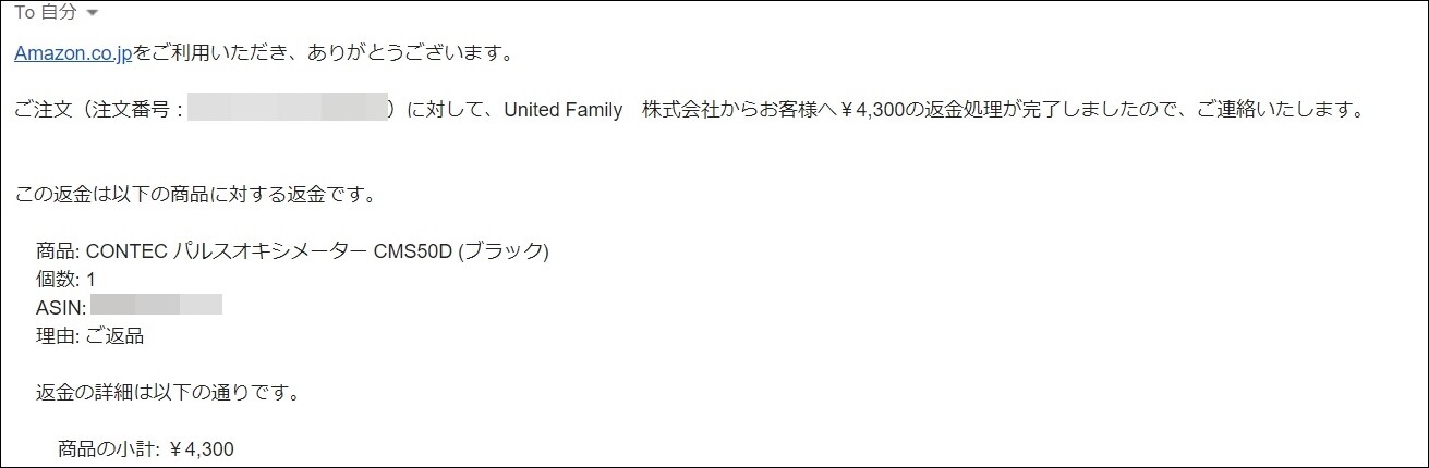 1/20 17:00 Amazonから返金の連絡が来ました!
