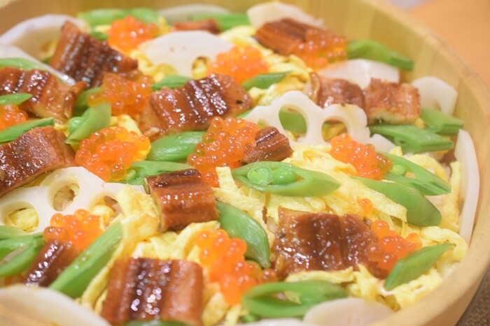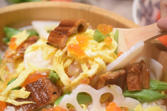 今年も「ちらし寿司の素」を炊き立てのご飯3合に混ぜただけで簡単。