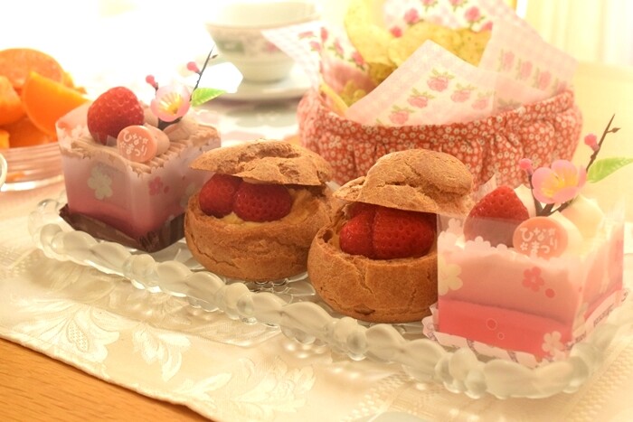 皆、ひな祭りのケーキを買っていたので、今日はおうちでお祝いをするのね~と楽しい気分になりました♪
