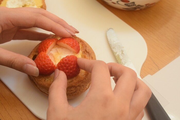 蓋をする♪これだけでイチゴシュークリームに変身♪