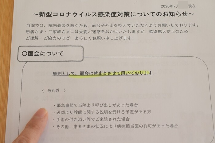 もちろんコロナの影響で、入院中はお見舞い禁止です。