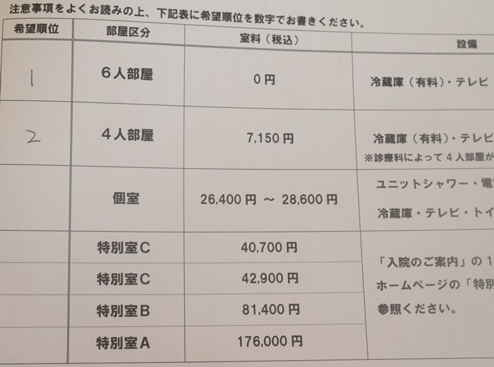 ちなみに今回の入院は、もちろん、差額ベッド代がかからない6人部屋を希望しました(・∀・)
